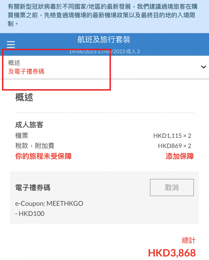 留意$56/$156呢個價已經包咗1件隨身物品+1件手提行李