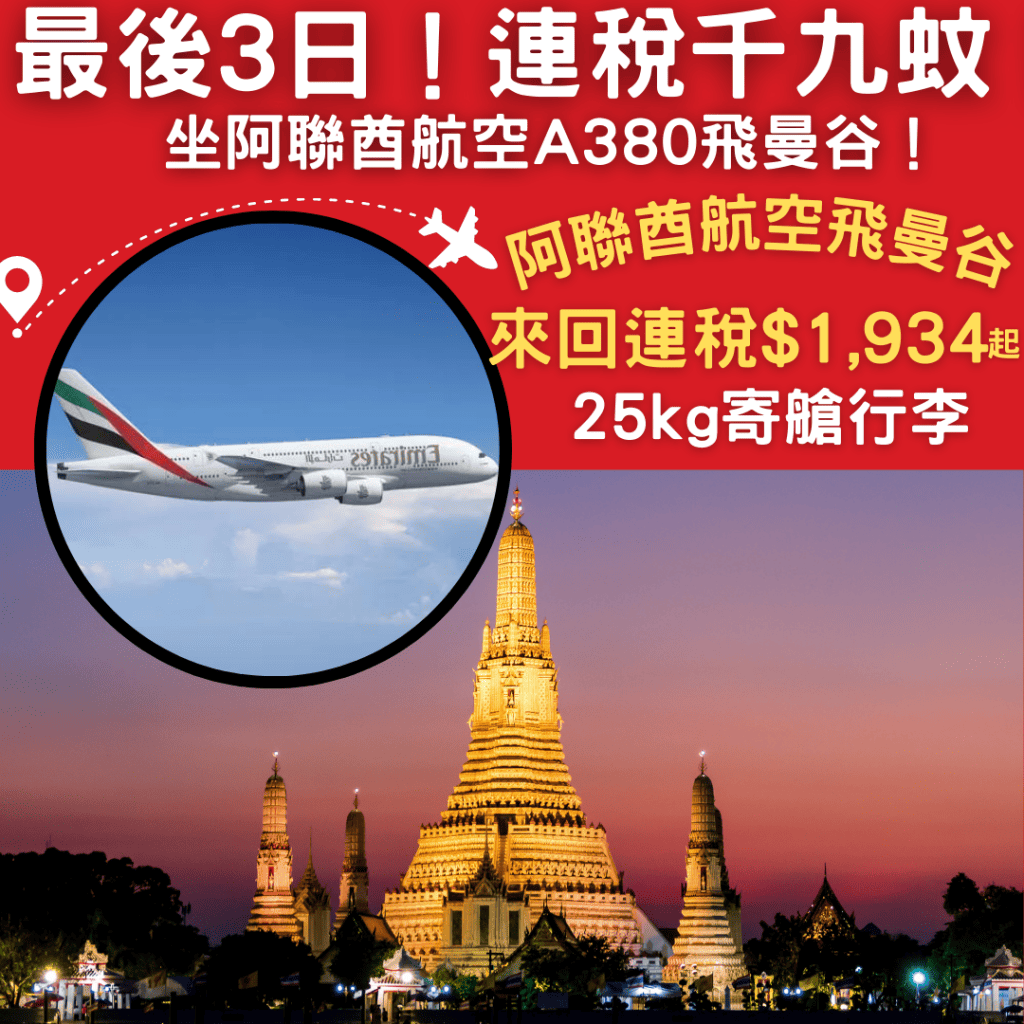 今次唔駛遠期出發!明年3月25日前出發!二人同行優惠!超過35個航點任你揀!