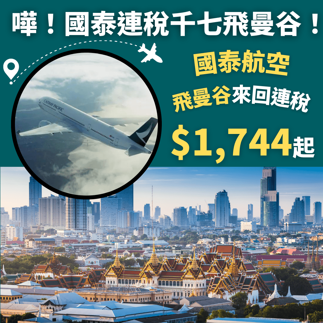 國泰連稅千七飛曼谷!9月25日前出發!香港飛曼谷來回連稅只需$1,795起 – 國泰航空 (優惠至9月25日)