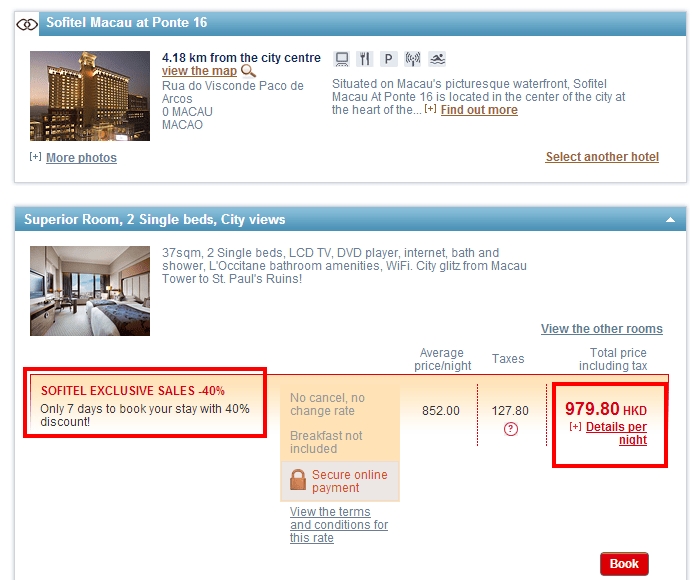 澳門威斯汀度假酒店官網同ZUJI Hong Kong都有呢隻優惠,大家可以去望下