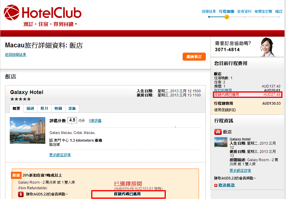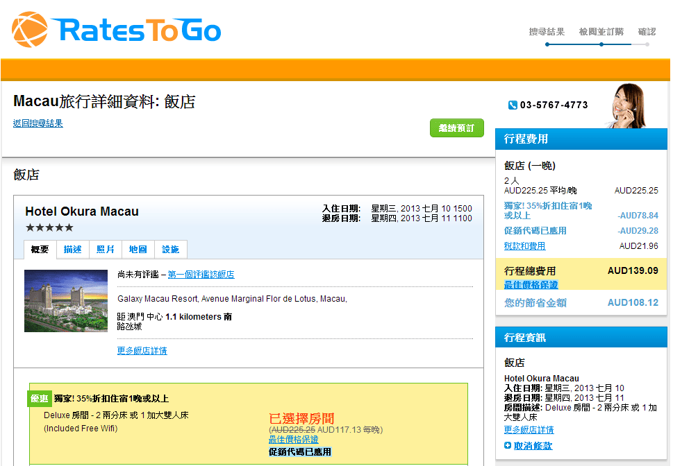 有興趣既話可以上HotelClub / RatesToGo 訂購