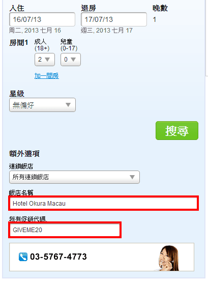 大家憑以下代碼在 HotelClub 預訂酒店,可享受額外20%的優惠 (2013年6月30日前預訂有效, 於2013年12月31日前入住)