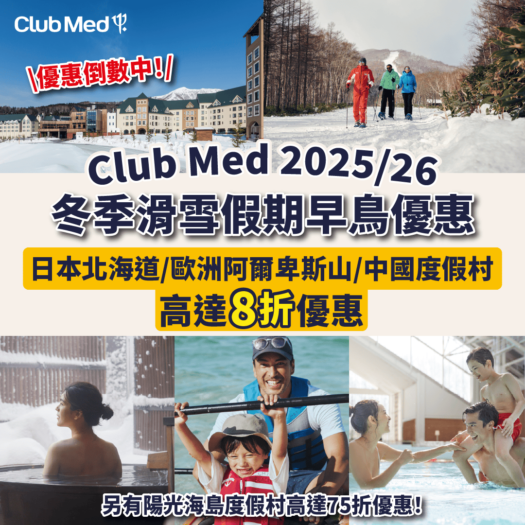 Club Med 2025/26 冬季一價全包假期高達8 折早鳥優惠: