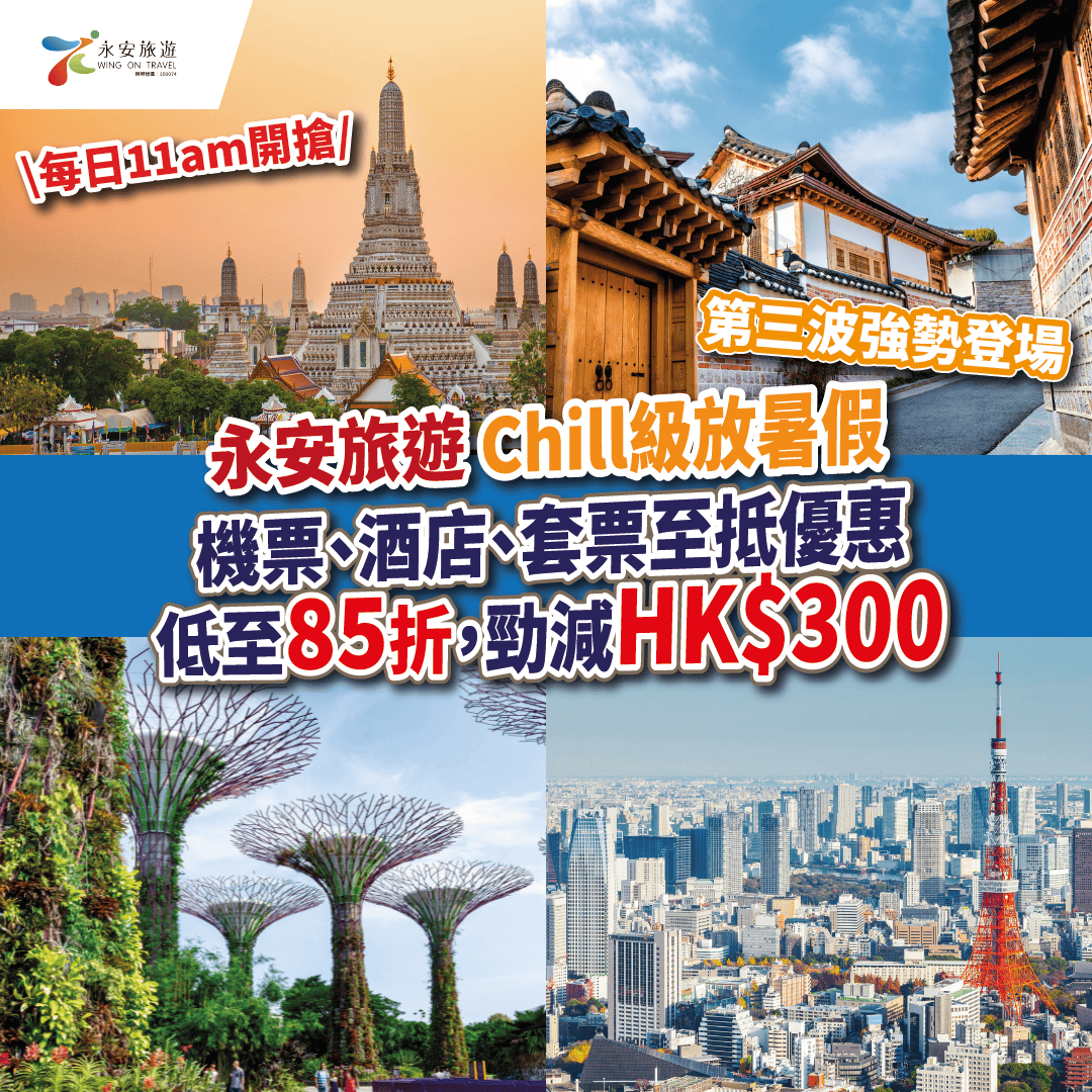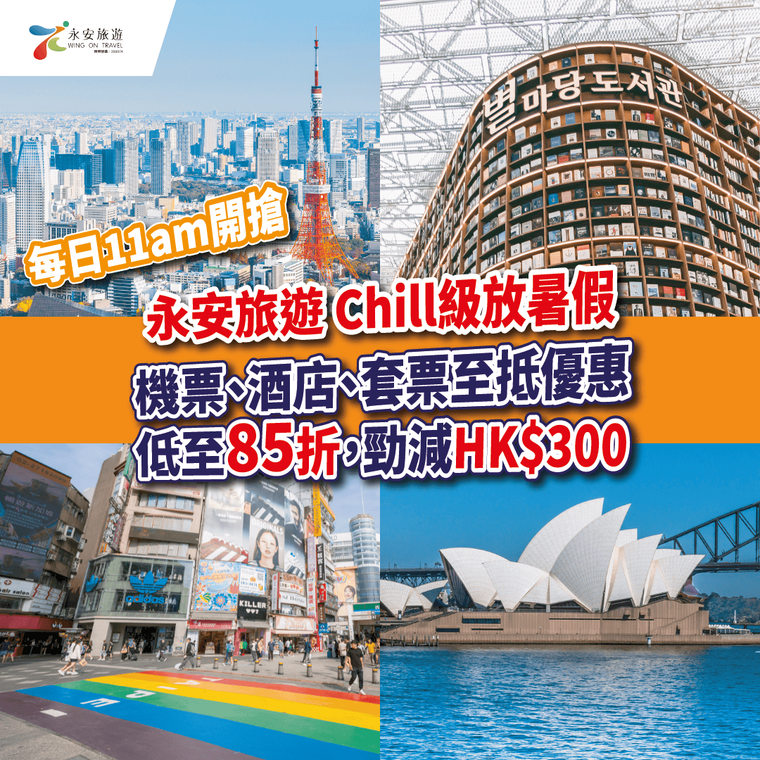 - 8月10日11am – 預訂全線酒店(預付)88折(最高減HK$300)