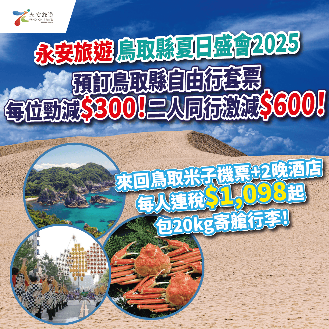 - 日本旅行團優惠每位減HK1,000 推廣碼:DA614 (限量首100單)