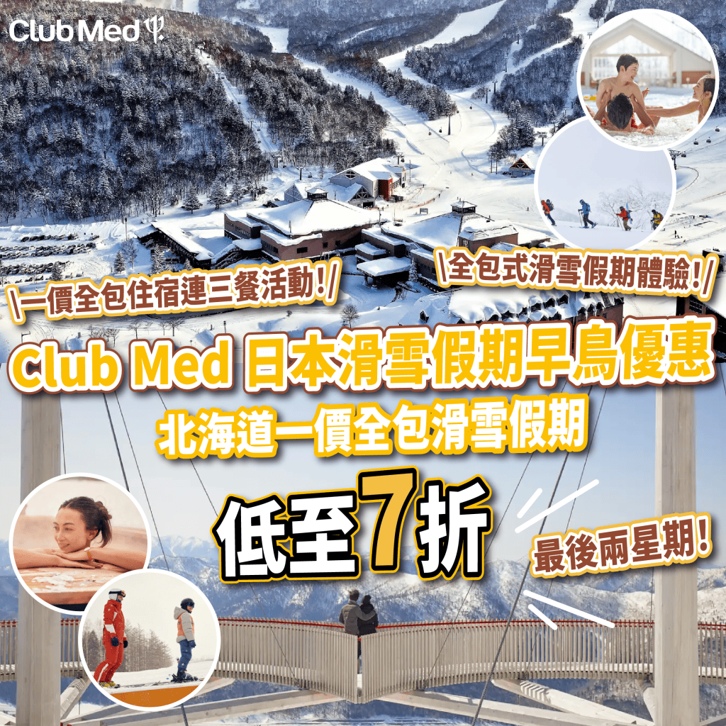 Club Med日本滑雪假期早鳥優惠做到最後兩星期啦,5月31日前預訂Club Med北海道滑雪度假村可享低至7折優惠!早鳥優惠最後機會!要book就快手啦!