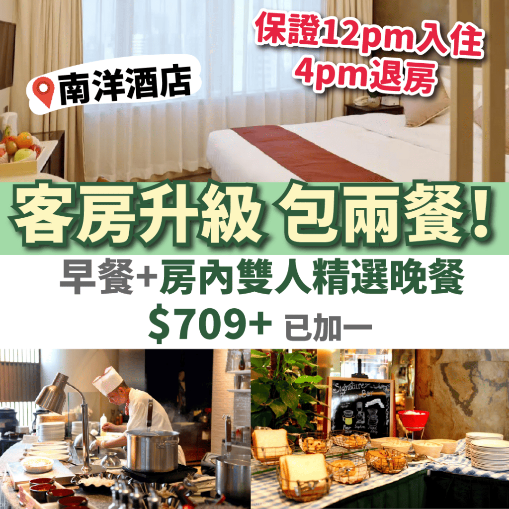 南洋酒店(South Pacific Hotel)快閃優惠又嚟!房內晚餐套餐+早餐,一晚連服務費$709起!仲可以雙重升級至尊尚客房!平日保證12pm入住,4pm退房,等你住足28個鐘! (附小編住宿報告)內文有入住評價及體驗俾大家參考!【附多圖試住評價】