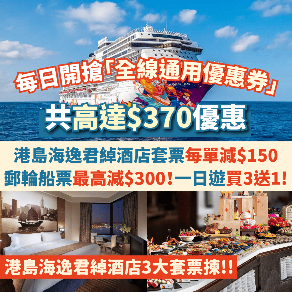今個禮拜Trip.com weekend sale好多優惠!朗廷The Food Gallery自助午餐+自助早餐+送紅酒一支,一晚連服務費$1,692起!六國四道菜黯然銷魂飯套餐+雙人早餐,一晚連服務費$1,199起!迪士尼淨房都有平,一晚連服務費$1,118起!挪亞方舟度假酒店每日限訂一間,入住恐龍世界主題房再包兩餐!仲有其他酒店優惠!