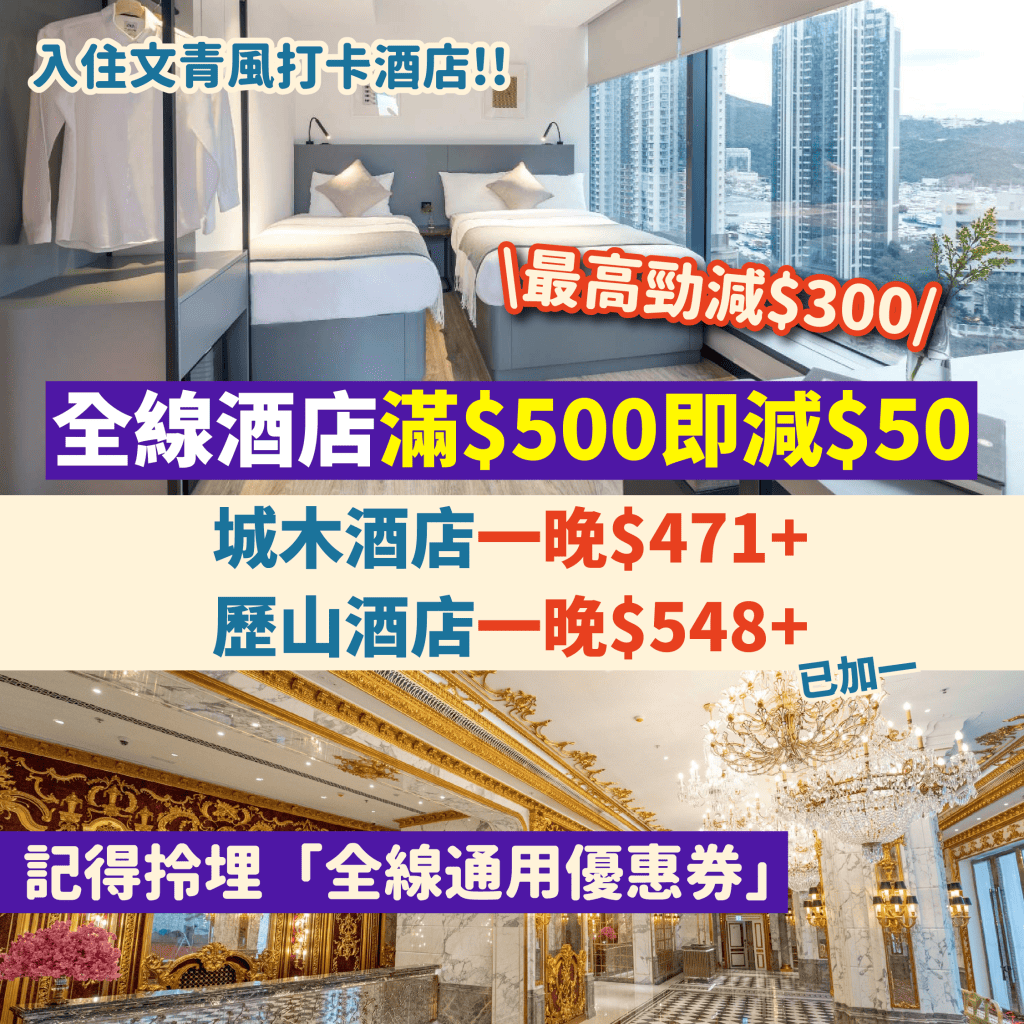 入住尊貴雙床房兩晚連服務費$578起 (平均一晚$289起),星期五至六入住貴$76