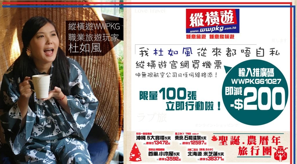 - 日本旅行團優惠每位減HK$1,000 推廣碼:EA206
