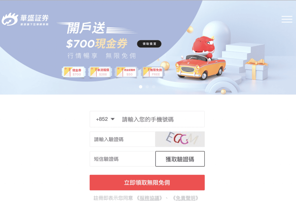 - 如有專屬權益,均以經「華盛証券」指定開戶連結完成首次驗證手機號並成功網上開戶為標準判定對應權益。
