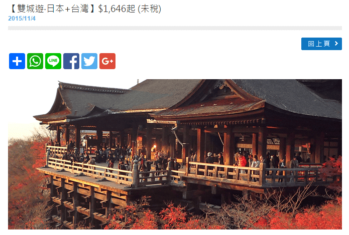 出發日期:即日至2016年3月22日、3月29日至4月28日、5月3日至6月29日