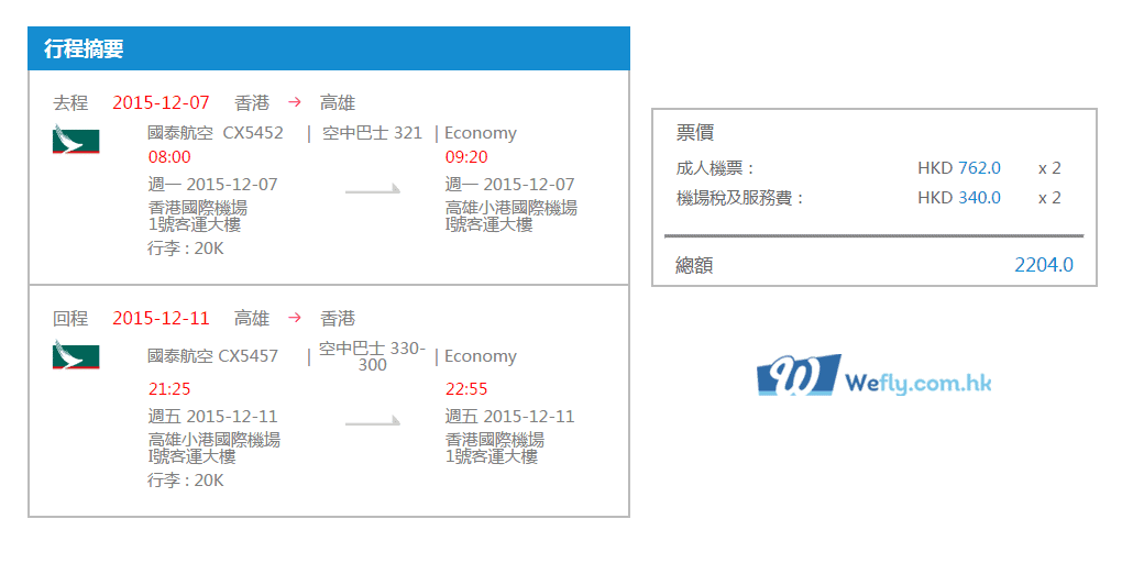 以上既價錢未包行李寄艙費用 (20kg每程$150、25kg每程$200)