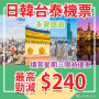 正呀!日韓台泰全線機票勁減優惠!