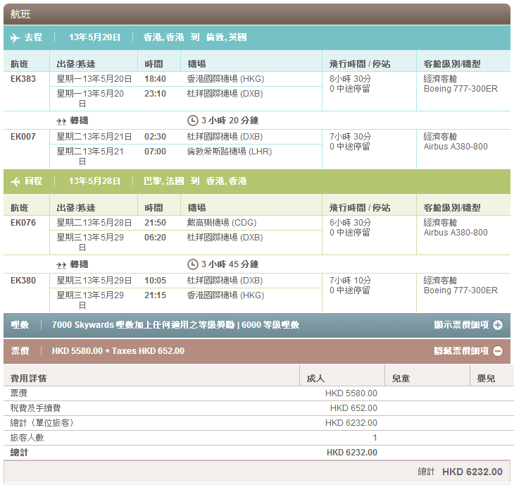 好似倫敦入巴黎出,來回連稅都只係$6,232,平過由倫敦走好多