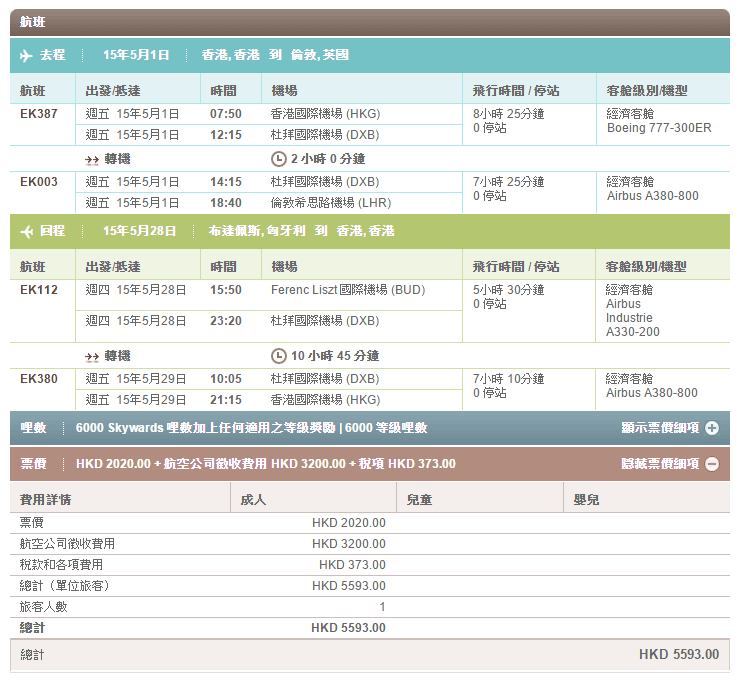 好似倫敦入布達佩斯出,來回連稅$5,593,比來回倫敦平