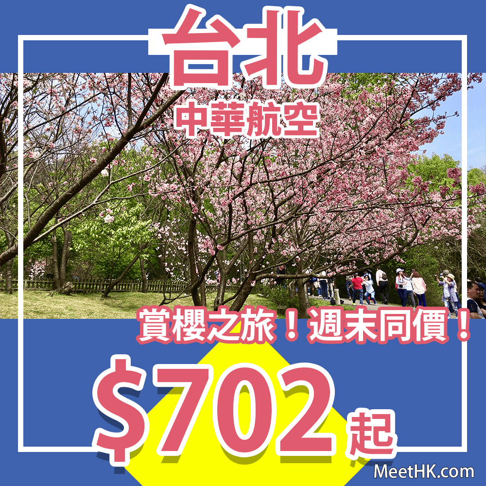 華航台北優惠!可早去晚返!賞櫻之旅!週末同價!明年3月31日前出發!香港往返台北只需$702起 – 中華航空 (優惠至11月14日)