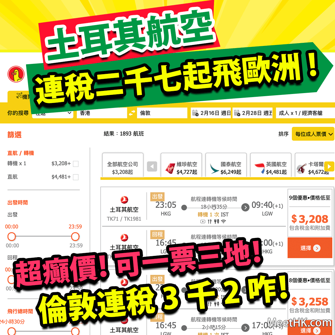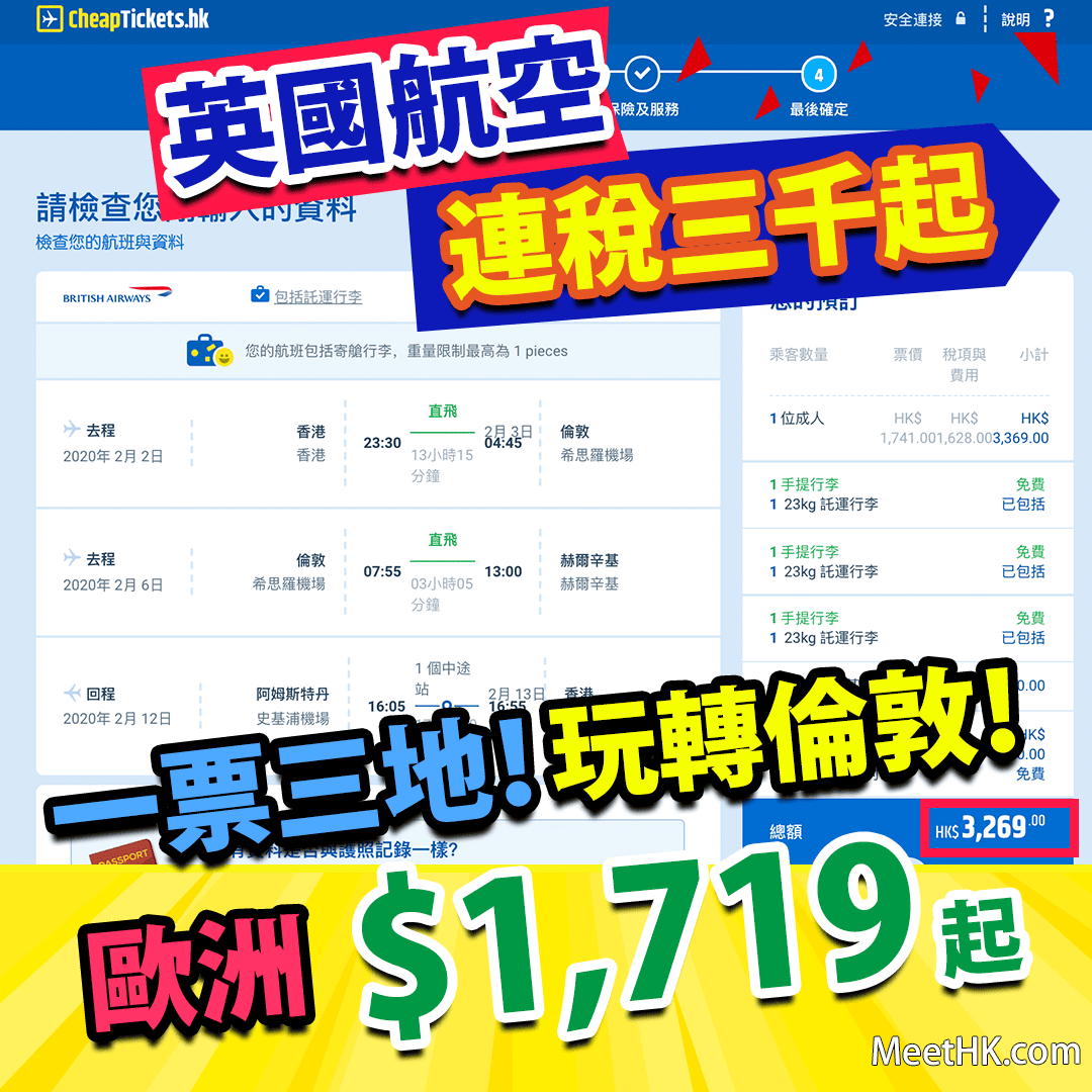 極罕見!英國航空/維珍航空推出歐洲各地超癲價!連稅2千3起!2月9日至3月11日出發!嚟緊去歐洲可以睇埋再決定!(優惠至2月11日):https://www.meethk.com/?p=96118