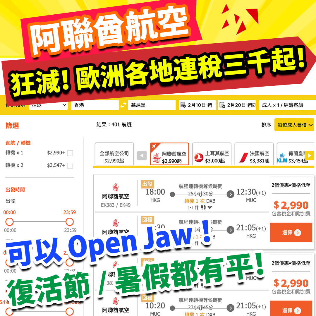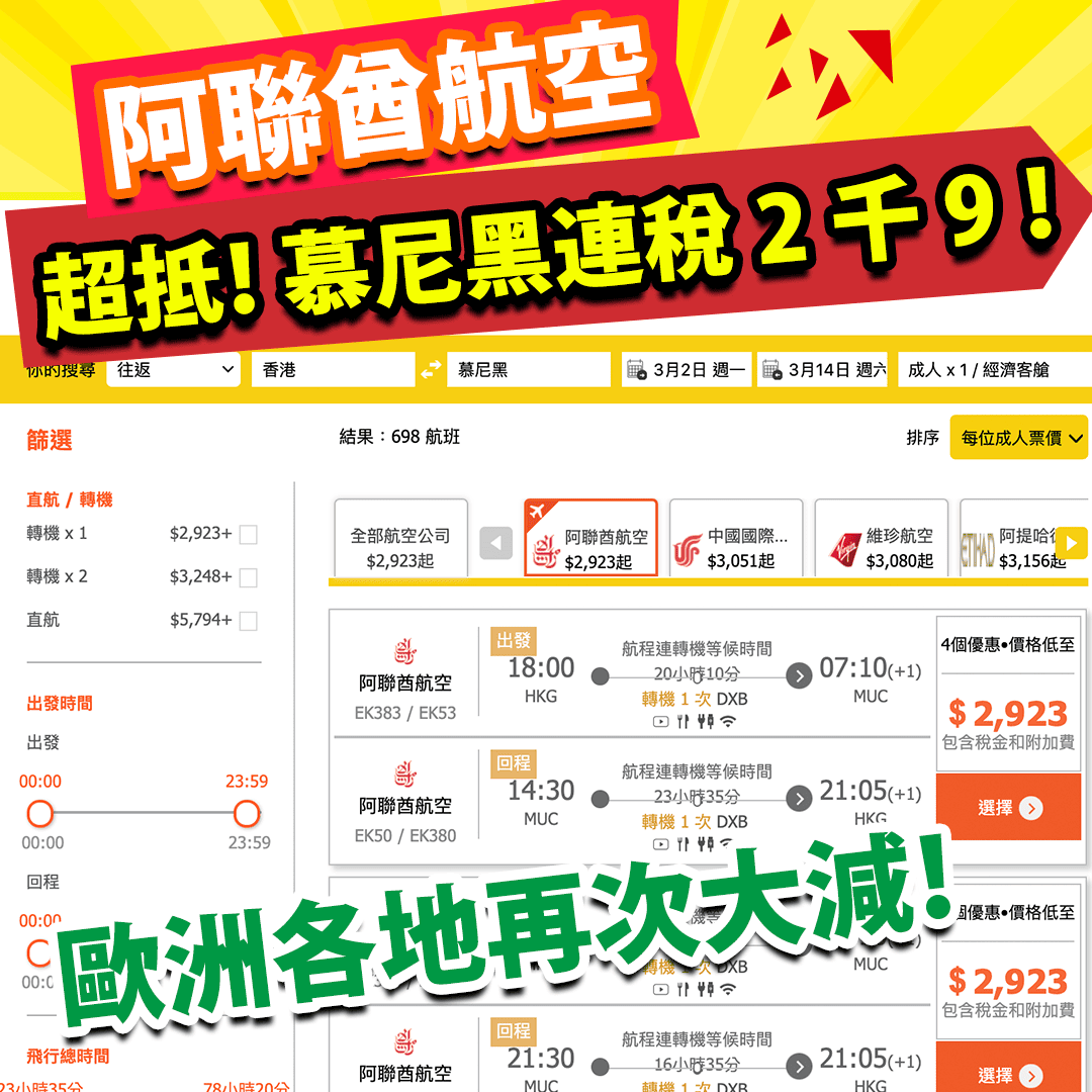 嘩嘩嘩!癲價中嘅癲價!連稅2千3起飛歐洲!真係極罕見!