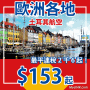 香港往返歐洲各地只需$153起