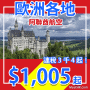 香港飛歐洲各地只需$1,800起