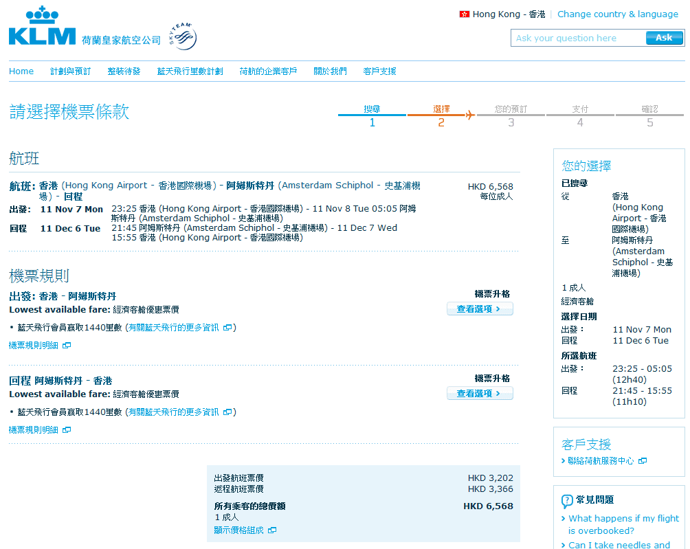 大家可以上 荷蘭皇家航空 KLM 官網查一下機位和訂購