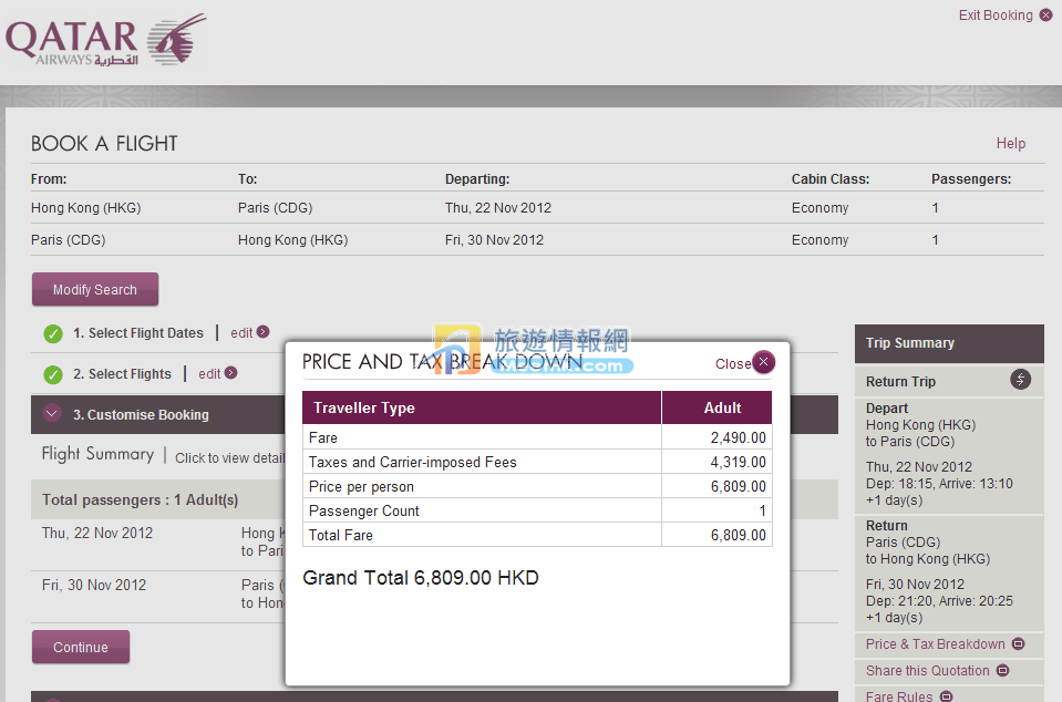 大家可以上 Qatar Airways 香港官網 訂呢隻優惠機票