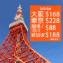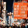 香港飛大阪單程只需$168起、東京$228起、峴港/河内$88起、新加坡$188起