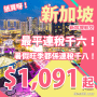 香港往返新加坡只需$1,091起,連稅$1,680起