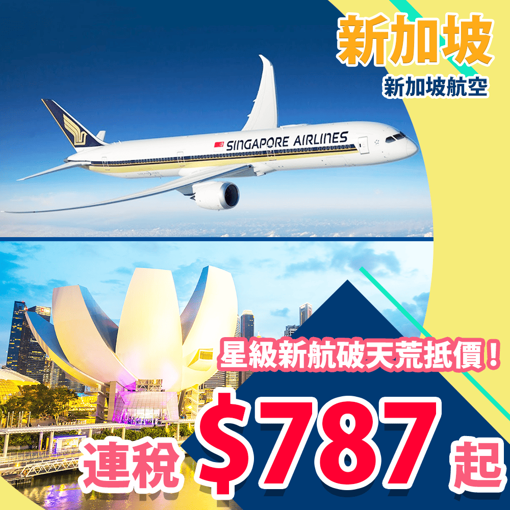 嘩嘩嘩!抵!抵!抵!星級新航經濟艙來回新加坡連稅$787、$787、$787!