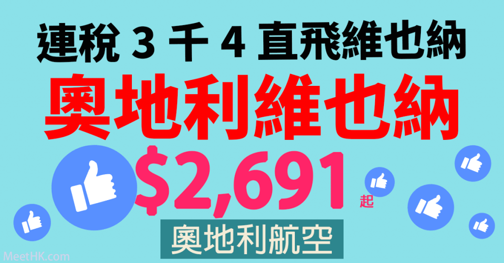 嘩!爆抵!連稅3千6直飛維也納!10月份出發!香港直飛奧地利維也納來回只需$2,880起 – 奧地利航空 (優惠至9月5日)