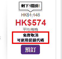 呢個折扣代碼唔適用於一些連鎖酒店集團,大家可以留意價錢下面有無顯示”可使用促銷代碼”