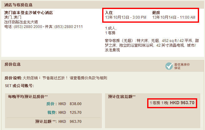 澳門喜來登金沙城中心酒店豪華客房每晚只需$838起,連埋稅就$964