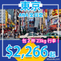 東京成田$2,100起,連稅$2,920起、東京羽田$2,400起,連稅$3,222起