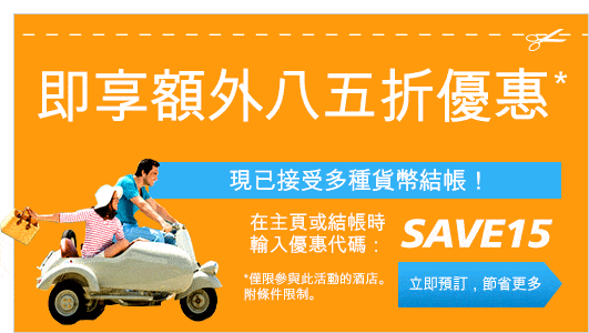 HotelClub同系網站RatesToGo岩岩推出左個15%既折扣優惠代碼